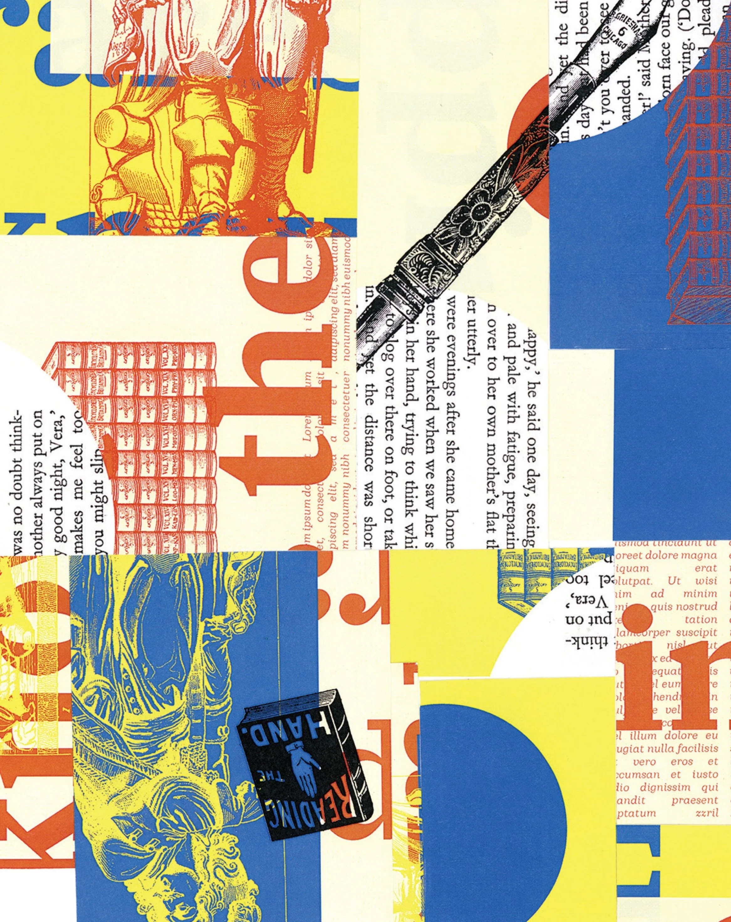 I began the project by establishing a voice through collage. I chose a primary color palette for a playful quality but used lots of detailed imagery to achieve a sophisticated and academic feel.