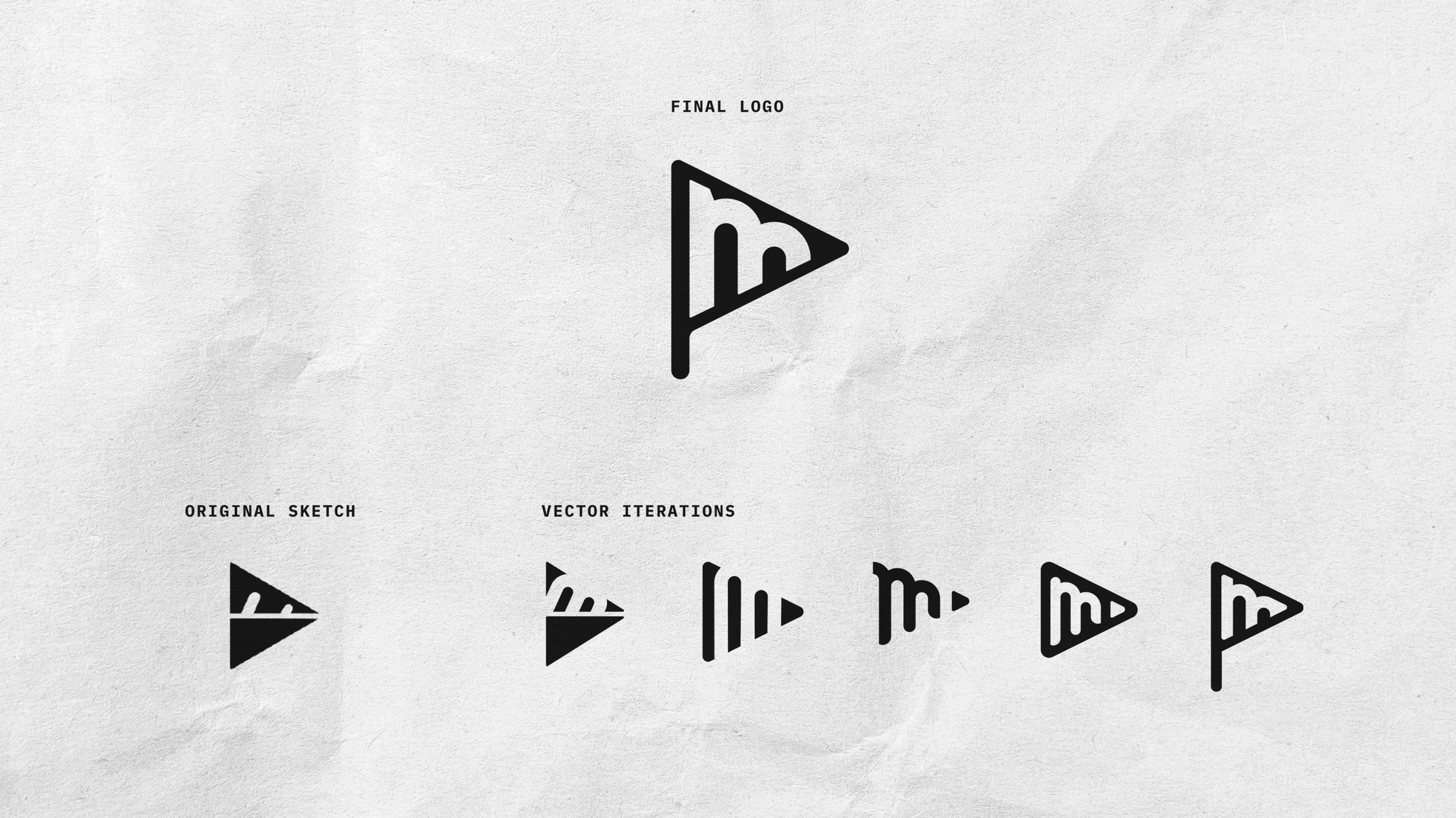The final logo is an initial “M” inside of a flag shape. The form of the letter itself depicts a bouncing ball while the flag shape calls on the iconic golf tee flags as well as representing the idea of propelling forward. With the final logo and color palette established, we fleshed out the brand with a thorough brand guide, accompanying letterhead and business card, and supporting apparel and accessories.